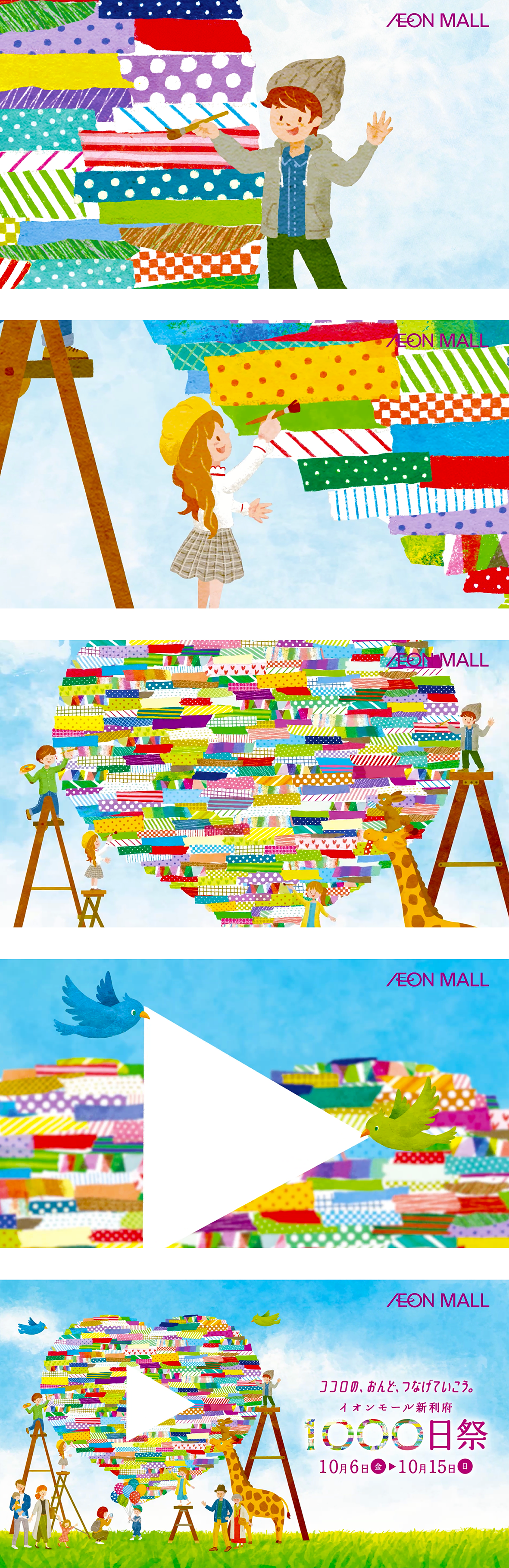 イオンモール新利府 1000日祭TVCMイラストレーション